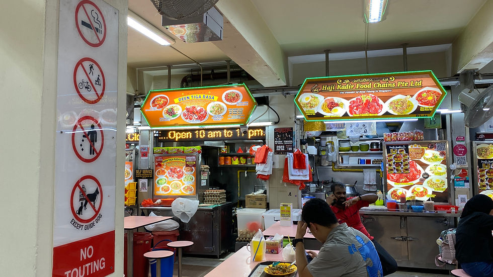 Dostupnost: Jídlo zde stojí obvykle mezi 3–6 SGD (50–120 Kč), takže si můžete vyzkoušet víc pokrmů najednou.